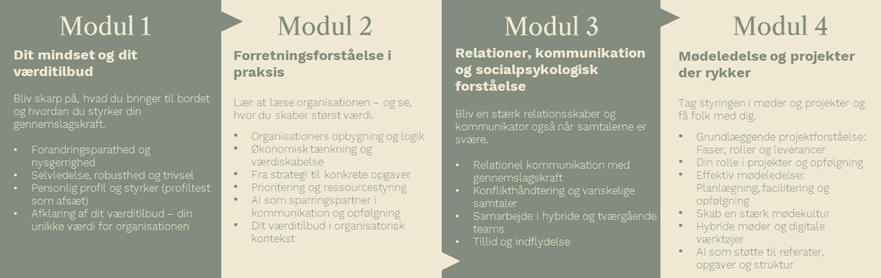 Du får en værktøjskasse, der løfter din rolle, tydeliggør din værdi og gør dig til en nøgleperson, som ’speaking partner’, når beslutninger skal træffes.